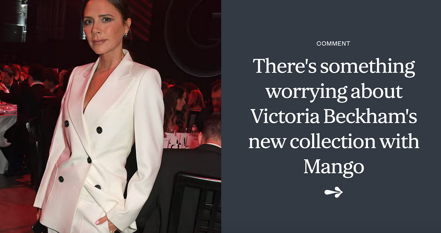 On the other hand Iām hating the Victoria Beckham X Mango fashion collaboration. In my day job Iāve been education myself about sustainability across a wide range of industry verticals. Also, those prices?? and for such cheap materials?? How and why are people spending their cash on this? Donāt they look further than the hype and the influencer marketing?